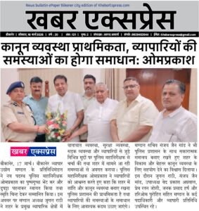 बीकानेर व्यापार उद्योग मण्डल ने पुलिस महानिरीक्षक का किया स्वागत एवं अभिनंदन