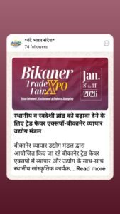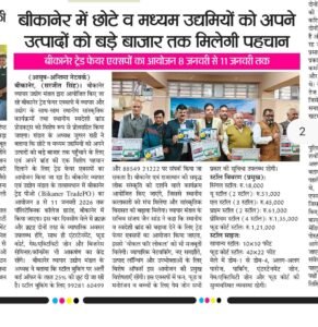 बीकानेर : 216 स्टॉल, फूड और गेम जोन के साथ मेगा ट्रेड फेयर एक्सपो 8 जनवरी से पॉलिटेक्निक कॉलेज ग्राउंड पर बड़े लक्ष्य साधने बीकानेर व्यापार उद्योग मंडल का फर्स्ट एक्सपो